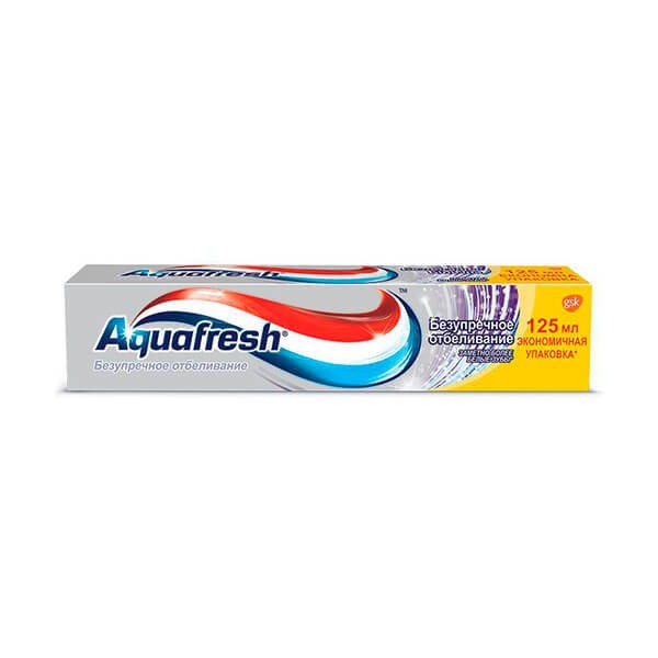 Паста Aquafresh Безупречное отбеливание освежает дыхание и безупречно отбеливает в два раза эффективнее, чем аналогичные средства, поскольку имеет уникальную формулу двойного действия с антибактериальными свойствами. Специальные микрочастицы образовывают на зубах защитный слой, глубоко отбеливая и предотвращая образование налета.