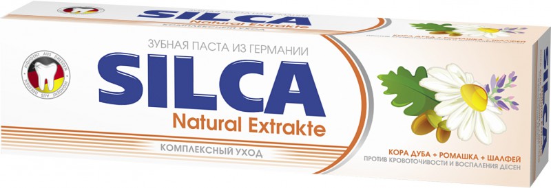 Комплексная зубная паста «SILCA Natural Extrakte». Кора дуба + ромашка + шалфей. Против кровоточивости и воспаления десен.